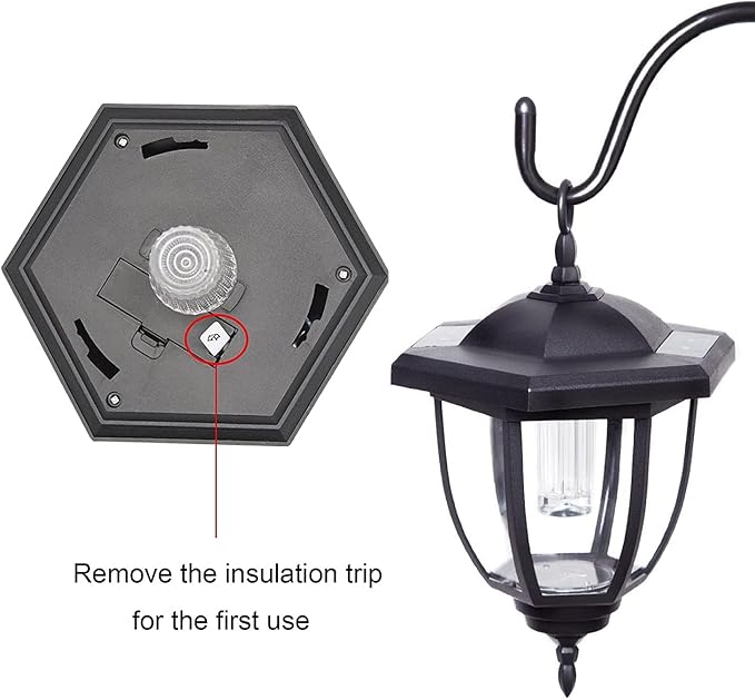 - Tips: When you receive hanging solar lights, please remove the tab then cover the solar panel by hand to keep them in the darkness to check whether the lights will light up or not.
