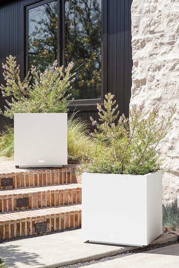 Veradek Block Series Cube Plastic Planter - Large Square Planter for Indoor or Outdoor Patio/Garden | Durable All-Weather Use with Drainage Holes | Modern Décor for Tall Plants, Trees, Flowers