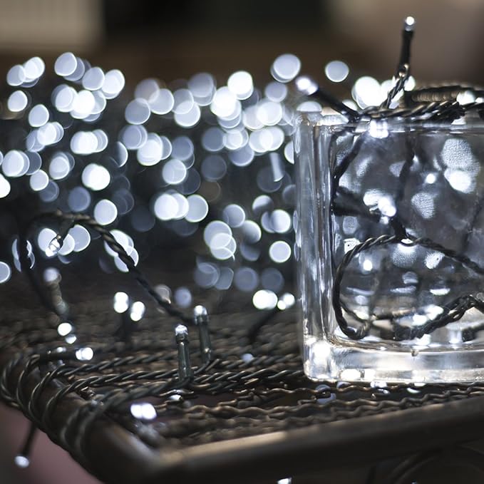 - 【Dark green cable Christmas Tree Light】Perfectly hiding on gardens, plants,and home decoration; 200pcs white LEDs up to 73ft/23m total length with 10ft/3m leading wire, space between each LED: 4 inch/10cm.