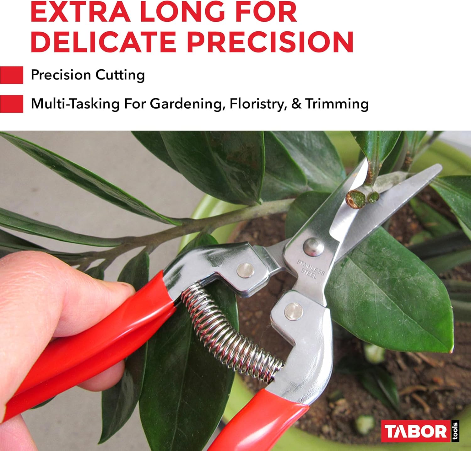 TABOR TOOLS Pruning Shears, Florist Scissors, Multi-Tasking Garden Snips for Arranging Flowers, Trimming Plants and Harvesting Herbs, Fruits or Vegetables. K17A. (Straight, Stainless Steel Blades)