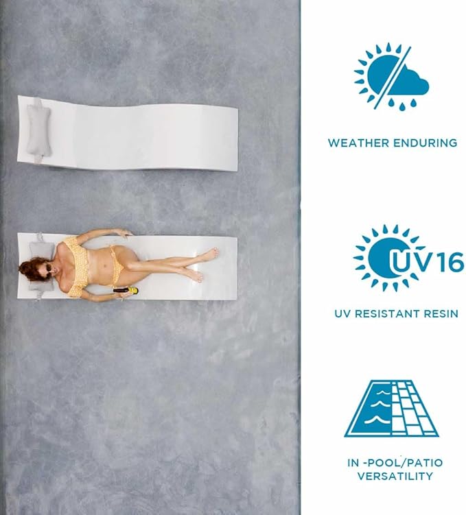 - SAFE FOR ALL POOLS - Whether your pool is saltwater or chlorine, vinyl or fiberglass, commercial or residential, this in-pool lounger works in depths up to 15” of water; or stay dry and lounge on decks, patios and wherever you choose to relax, pool not required.