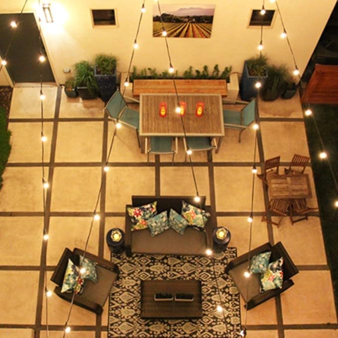 - Outdoor string lights waterproof: UL certified garden lights is built with weatherproof technology, which can withstand extreme temperatures, rain, wind, and damp climates. Commercial grade porchlights perfer for indoor and outdoor use, decorate the market, cafe, bar, city rooftop, restaurant, business festival, etc.