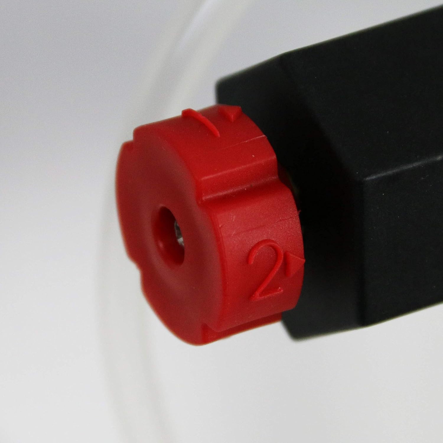 - Rigid inlet tube with filter for debris-free mixing and drain plug with valve to quickly empty the tank after each use