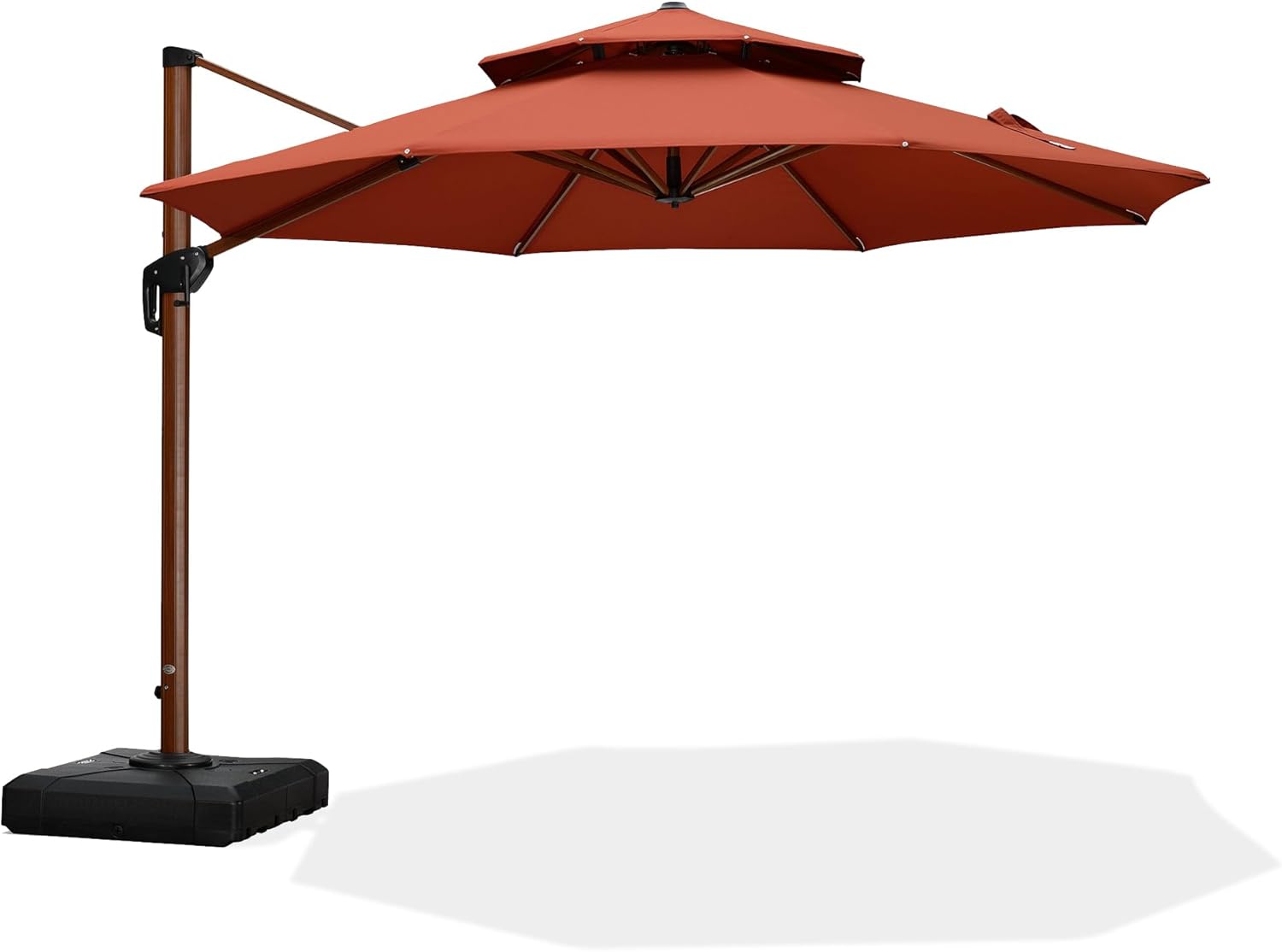 PURPLE LEAF 11ft Patio Umbrella Outdoor Round Umbrellas Large Cantilever Umbrella Windproof Offset Umbrellas Heavy Duty Sun Umbrella for Garden Deck Pool Patio, Brick Red