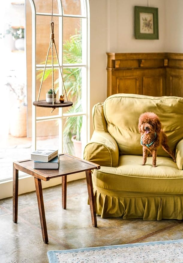 - Vintage Hanging Shelves: Round Floating shelf with espresso color surface looks rustic in country style, prefect as a home decoration. Hanging in living room bedroom dinning room kitchen patio or indoor garden, adds minimalist flair to home style. Decorative pots are not included in this plant hanger