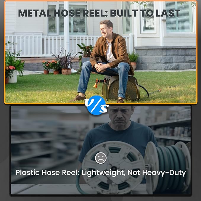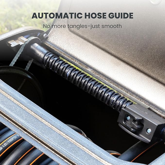 - EASY WINDING - Make garden hose storage simple and clean! The easily assembled crank handle and the hose guide helps you manually wind the hose evenly around the reel with less mess.