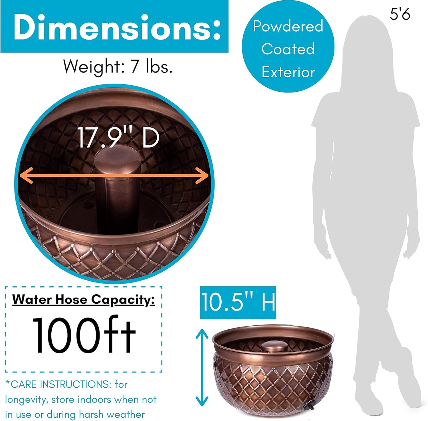 - DURABLE STEEL CONSTRUCTION: Crafted from high-quality steel with copper accents, this lightweight yet sturdy hose holder is crafted to withstand the elements for years of reliable use.