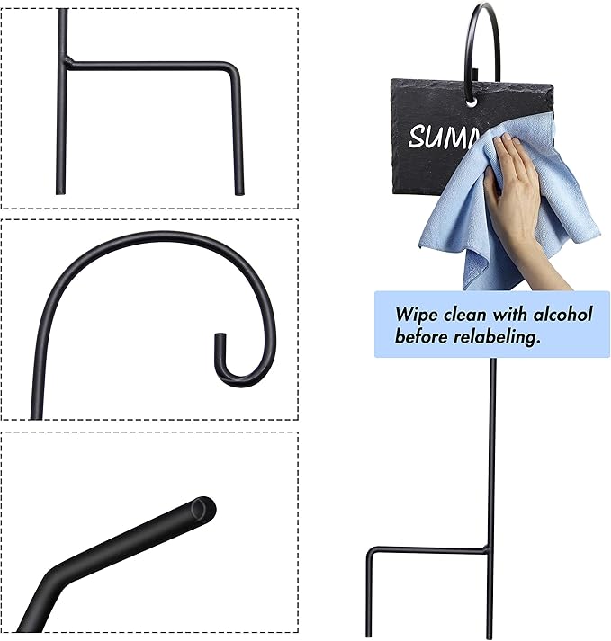 - Best Choice of Plant Labels: Set of 10 slate plant labels designed to hang from the metal rods. Each plant label marker measures 2.7 x 3.9 inch with a thickness of 0.25 inch, stainless steel metal rod about 16.5 inch long. They're thicker, stronger, wider and easier to write on than other plant labels for garden classification.