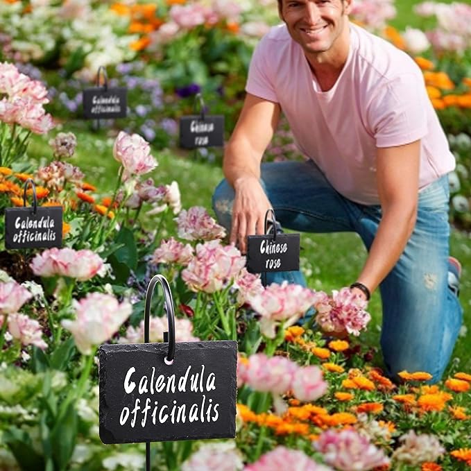 - Keep Your Garden Organized: Our slate slab plant label garden signs are great for marking what type of seed you plant. Label with name, date planted, variety, instructions. Ideal to decorate, organize and tag your plants, pots, garden and flower beds.