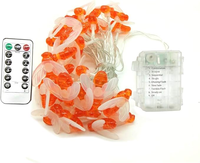 - 40 Bee Shaped LED lights, Total length 6m/19.5ft,Lighting Mode: 8 Setting controller with memory chip, includes one steady on and 7 flashing modes.