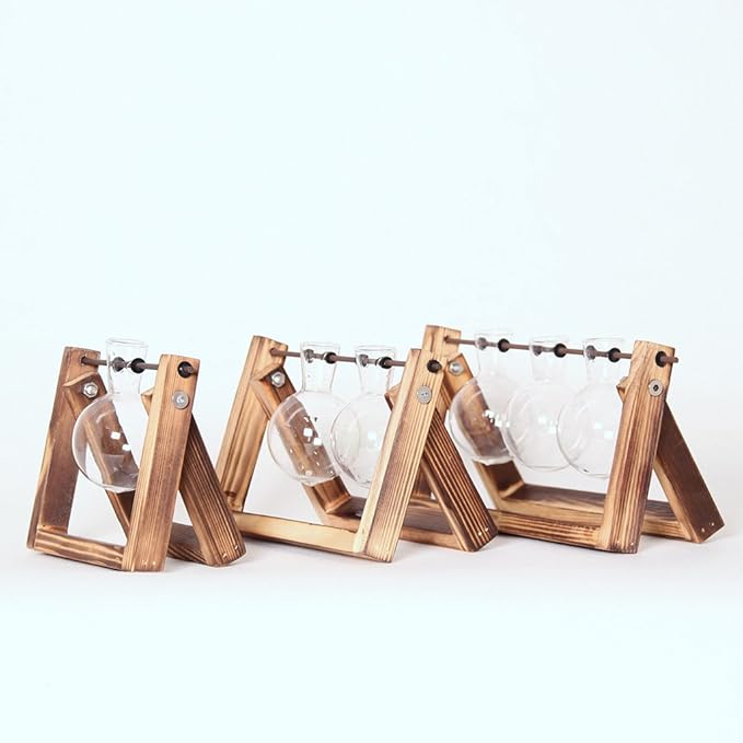 - Retro Design: The plant holder combines 3 different materials glass bulb vase, wooden stand and metal swivel holder, reflects the sense of art and the unique taste of the decorator. Great plant propagation for hydroponics plants or live air plants desktop, office, home and wedding decor.