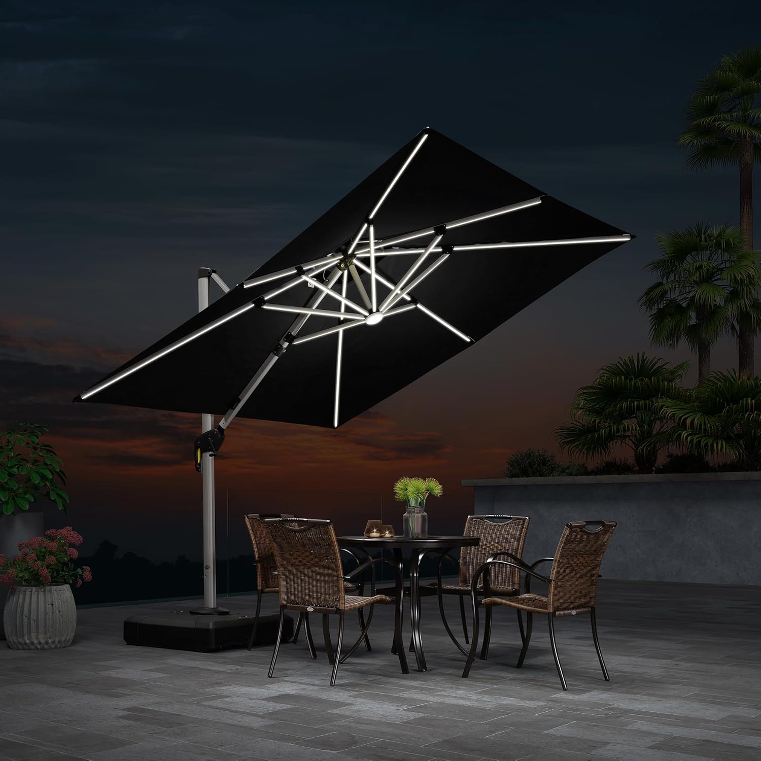 PURPLE LEAF 9 Feet Double Top Deluxe Solar Powered LED Square Patio Umbrella Offset Hanging Umbrella Outdoor Market Umbrella Garden Umbrella, Black