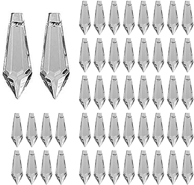 50pcs 38mm Chandelier Crystal Icicle Prisms Replacement Drops Lamp Candle Holders Curtain DIY Parts