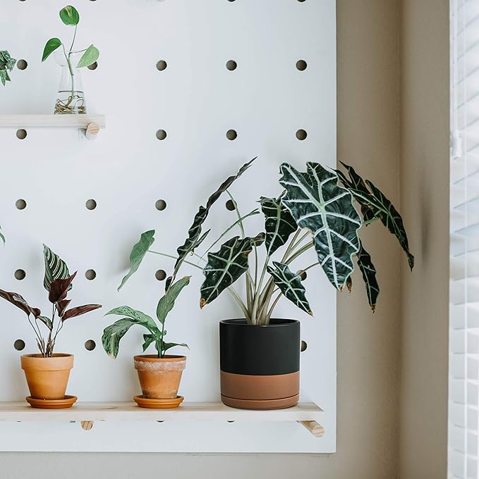 - Simple, elegant, and modern cylindrical straight round planter pot with saucer and drainage hole.