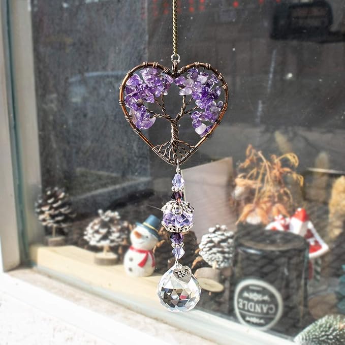 - Material: Shining window hanging ornament, handmade of tumbled stones tree of life and K9 crystal glass point pendent