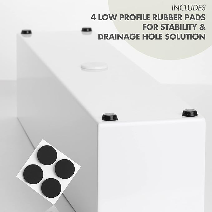 - Modern room decor: Our stylish rectangular planter box makes a decorative statement on its own. It is simple yet elegant. This minimalist design has been powder coated with a pure white easy to clean finish. This finish is resistant to scratches, chips and fading. It is perfect to elevate and blend into any home décor! Please note that plants and rocks are not included.