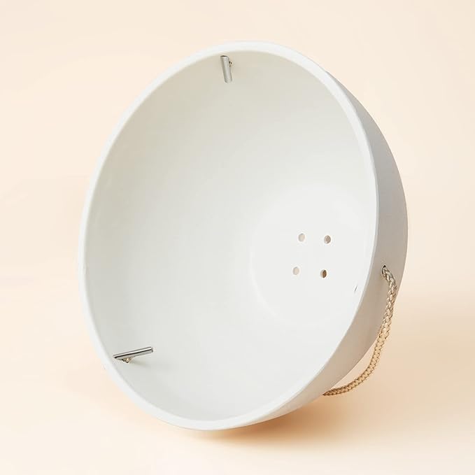 - HANGING FLOWER PLANTERS - This attractive set of 2 white hanging flower planters(10''D*4.7''H) is an ideal way to enjoy your favorite hanging plants and flowers. You will love them adorning outdoor areas such as your patio, deck, or garden or indoors in your kitchen, living room, or bathroom.