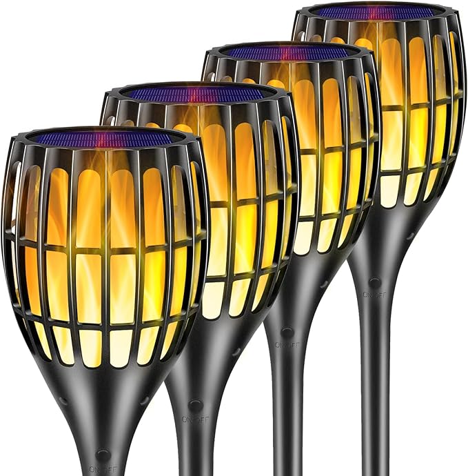 - 🔥 EASY INSTALLATION & IP65 WEATHERPROOF - Just place the solar flame lights into your lawn, garden, a flower pot, bench, pathways. IP65 waterproof dancing flame solar torch light was built to withstand all kinds of weather all round year.
