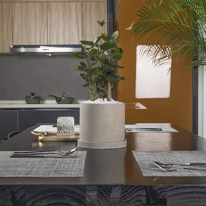 Ekirlin 6 Inch Flower Plant Pot Indoor - Grey Cement Garden Planter Concrete Planter with Drain Hole Saucer, Modern Succulents Containers for Home Decor, Office & Outdoor