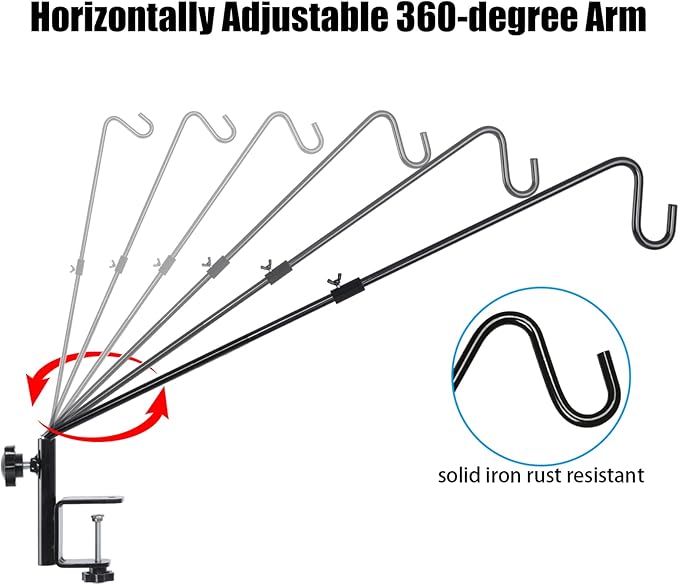 FEED GARDEN 31 Inch Heavy Duty Deck Hook, Non-Slip Clamp, 360 Degree Swivel, Black for Bird Feeders, Planters, Suet Baskets, Lanterns, Wind Chimes, 2 Pack
