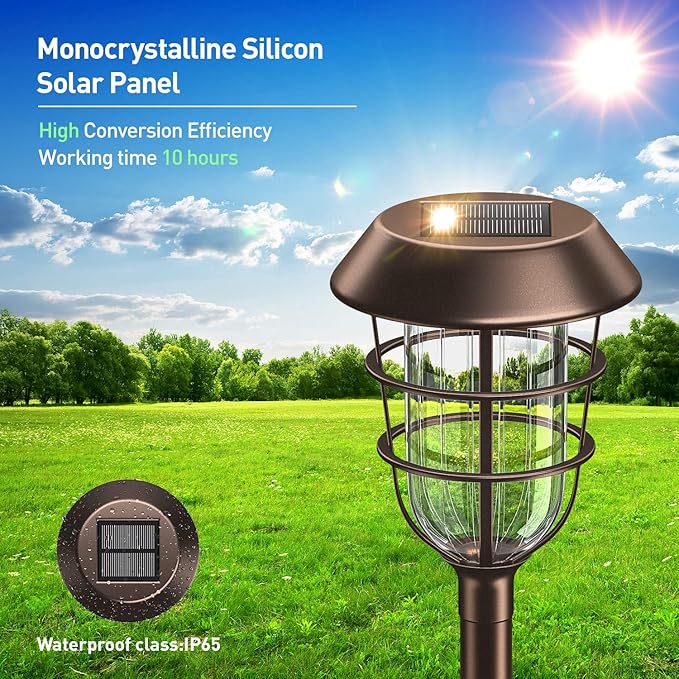 - ☼ WEATHER-RESISTANT & WATERPROOF. Solar path lights are waterproof IP65. Don’t need to worry about them in bad weather like rain, snow, frost or sleet.
