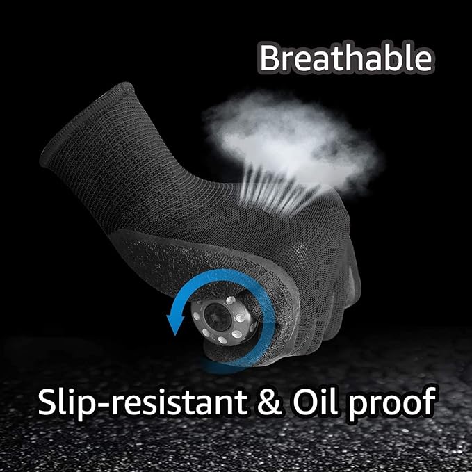 - EXTURED COATING—Latex/rubber palm and finger crinkle coating, provides Anti-slip, Cut and Puncture resistant and repels light liquids