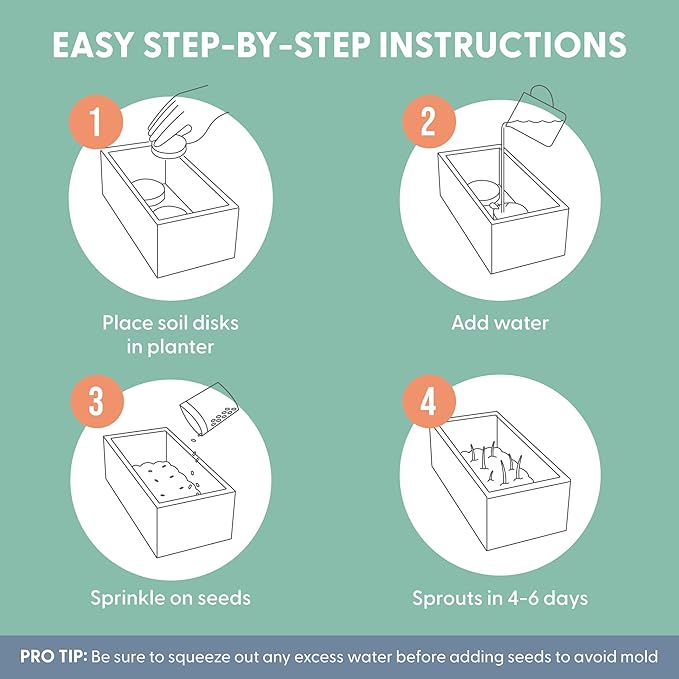 - Cat Plant Magic: Add a soil disk, a splash of water, and a sprinkling of seeds, and watch your cat grass planter kit sprout like magic. Read our Cat Ladies insert for easy-to-follow instructions and growing tips, and watch your organic cat grass sprout up to 4” in just 4–7 days. No green thumb required.