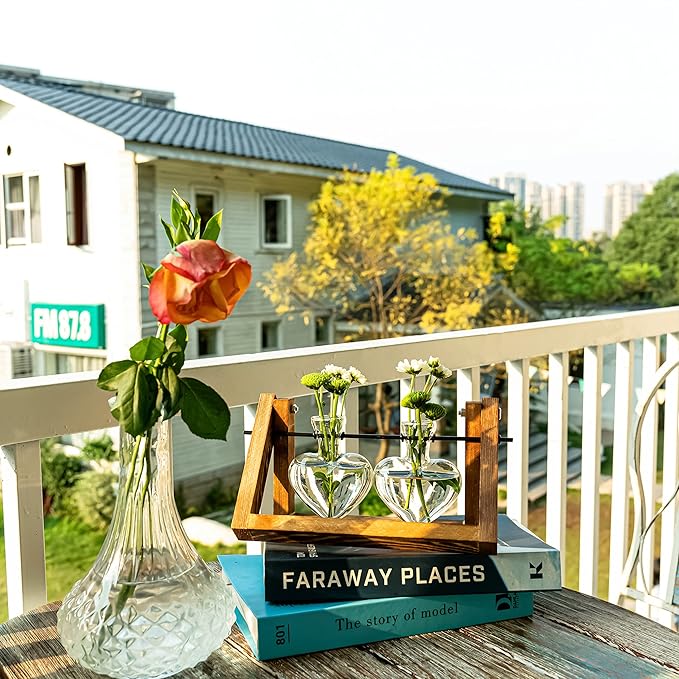 - Retro Design: The plant holder combines 3 different materials glass bulb vase, wooden stand and metal swivel holder, reflects the sense of art and the unique taste of the decorator. Great plant propagation for hydroponics plants or live air plants desktop, office, home and wedding decor.