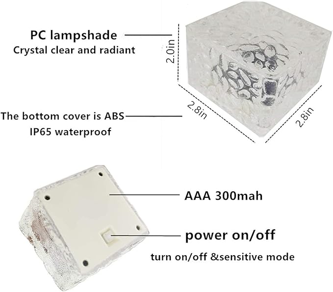 - Easy to use Solar Brick Light: Our Solar Ice Cube Lights Outdoor Waterproof are easy to install without wiring, and the automatic light sensor will automatically turn them on and off. Please remember to turn on the switch to "ON" after receiving this LED landscape light to make sure it is It can be charged under the sun and light up your yard when night falls