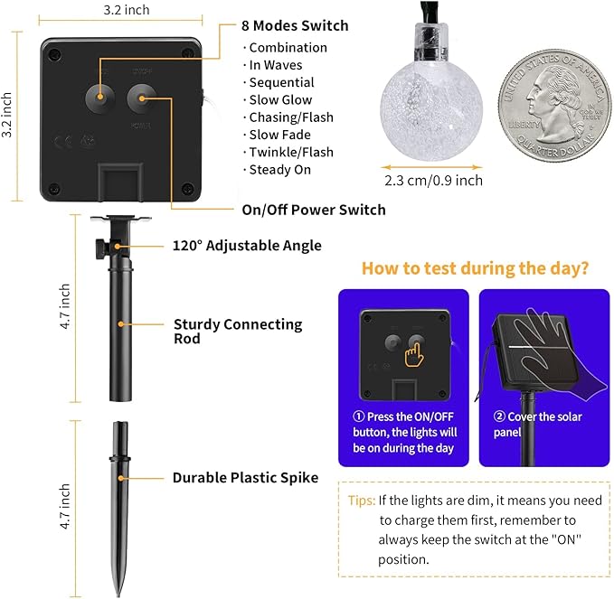 - 【Wide Application & Memory Function】The solar globe string lights with built-in memory chip save your last modes setting and no need to reset mode every day; Perfect decoration for terrace, pergola, bistro, backyard, deck, patio, garden, Christmas, holiday, wedding, party and other celebration occasions.