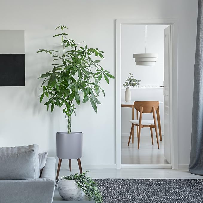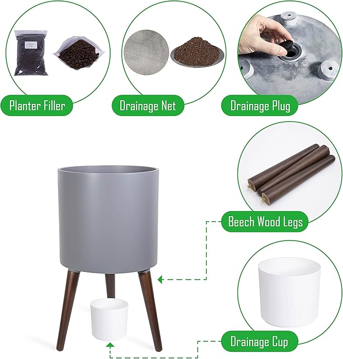 D'vine Dev 12 Inch Planter Pot with Stand, Mid-Century Tall Plant Pot with Legs for Indoor Plants, Large, Grey, 88-O-C-3