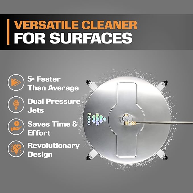 - Perfect for Homeowners and Professionals: This EDOU pressure washer surface cleaner easily attaches to your power washer wand, delivering effortless control for patios, driveways, sidewalks, and decks