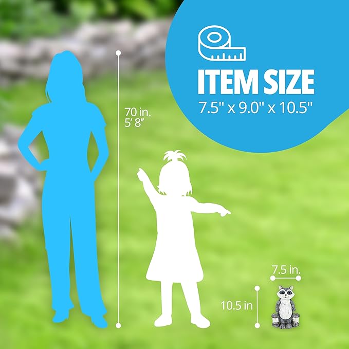 - RACCOON GARDEN STATUARY: Add a touch of adorable charm and enchantment to your garden decor with the Exhart Raccoon Solar Garden Statue; crafted from durable resin and meticulously hand painted, these solar garden decorations are an excellent way to add cute and whimsical decor and soothing accent lighting to your outside garden, front porch, patio, lawn, or yard