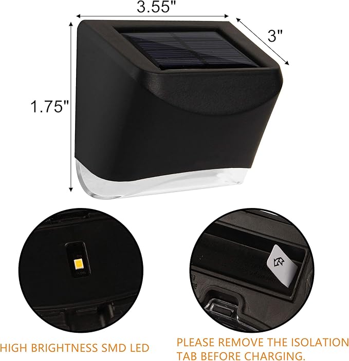 - Outdoor Solar Decoration: The solar deck lights illuminates and make your home feel safer and more welcoming. These are ideal for patio, yard and garden, backyard, stair, fence post. There is an INSULATION STRIP on the back of the light, please remove insulation strip before charging.