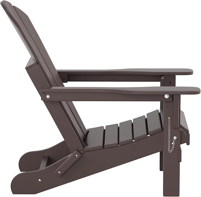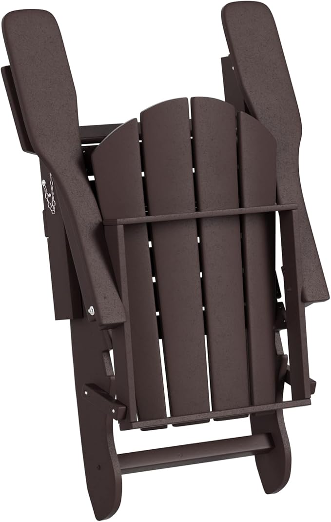 WO Home Furniture Adirondack Chairs Table Set of 3 PCS Outdoor Folding Chairs Coffee Table Weather/UV Resistant for Lawn, Garden, Bon Fire, Balcony (Dark Brown)