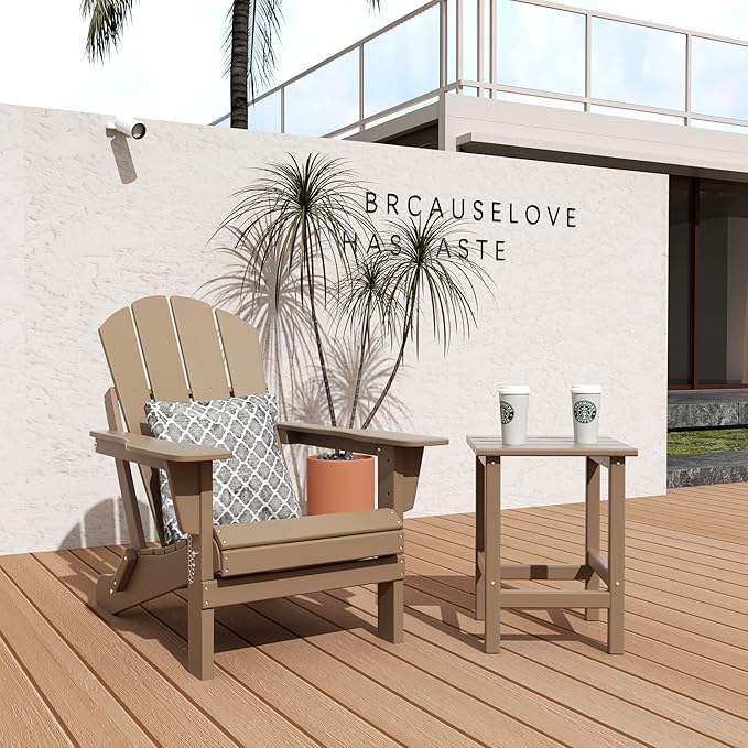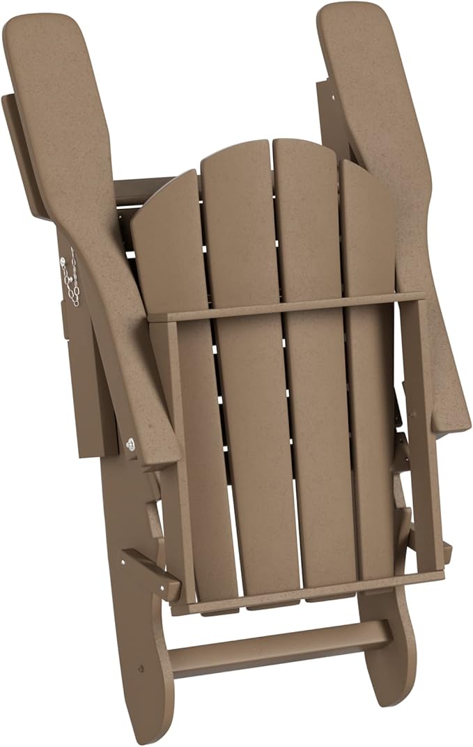 WO Home Furniture Adirondack Chair Table Set of 2 PCS Outdoor Folding Chair w Side Table Weather/UV Resistant for Lawn, Garden, Bon Fire, Balcony (Weathered Wood)