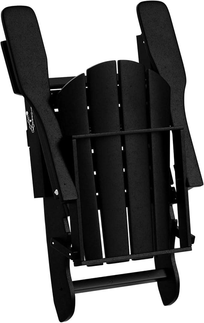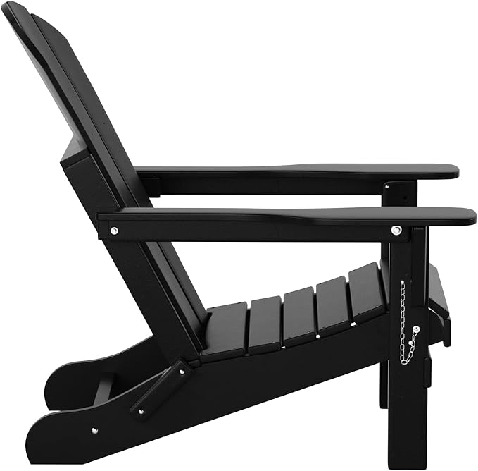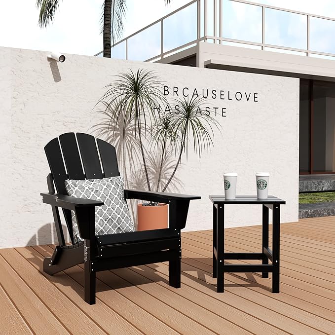 WO Home Furniture Adirondack Chair Table Set of 2 PCS Outdoor Folding Chair w Side Table Weather/UV Resistant for Lawn, Garden, Bon Fire, Balcony (Black)