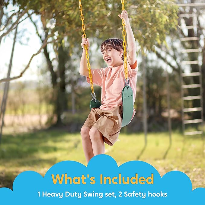 TURFEE Heavy Duty Swing Seat Green Color with 66” Chain, Swing Set Accessories Replacement with Snap Hooks for Kids Outdoor Play Playground