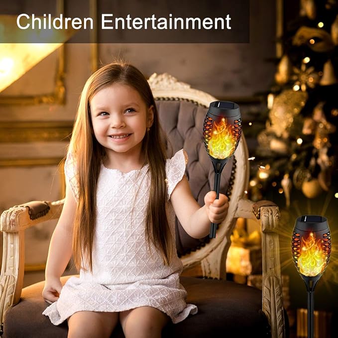 - Flame Torches Flickering Flames: Solar outdoor lights outdoor decorative flicker a soft and mod-enhancing "Real" flame for outside decorations for patio, yard, porch, pool,garden decor and for party, camping, barbecue, wedding, christmas, halloween decor.