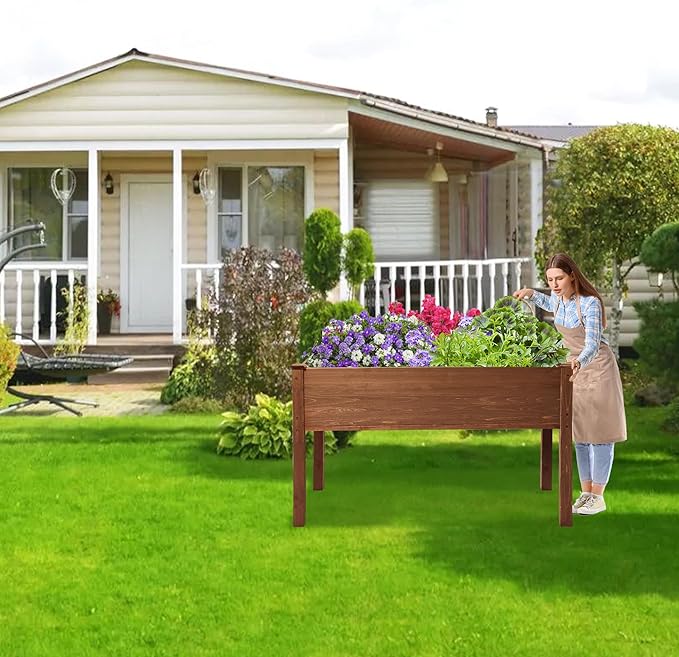 LZRS Raised Garden Bed Outdoor Planter Box with Legs for Herbs, Vegetables, Flowers, Great for Outdoor Patio, Yard and Deck, 220lb Capacity, Brown