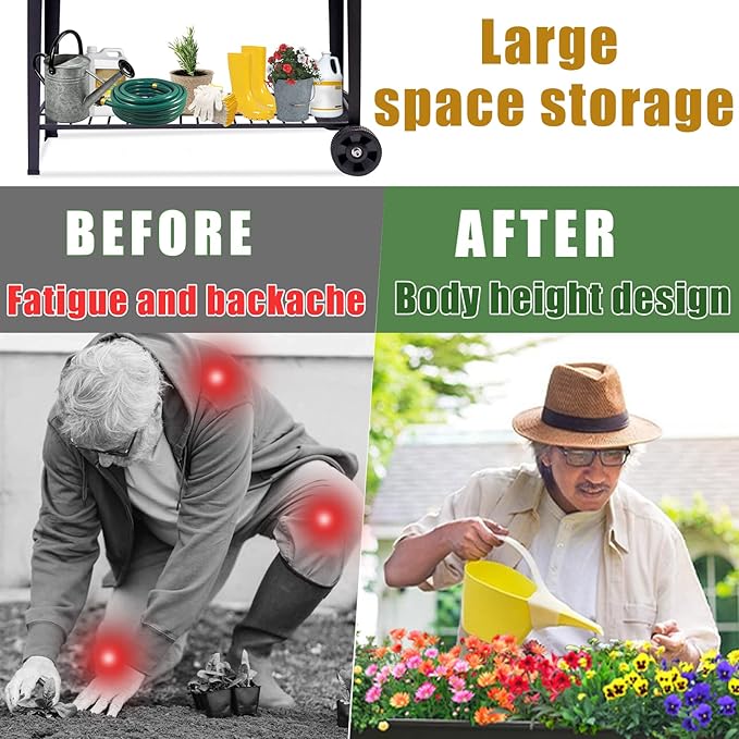 - Convenient Design: The raised flower pot with legs is high enough to avoid bending over, and it comes with two smooth wheels on one side and a handle on the other for easy movement.