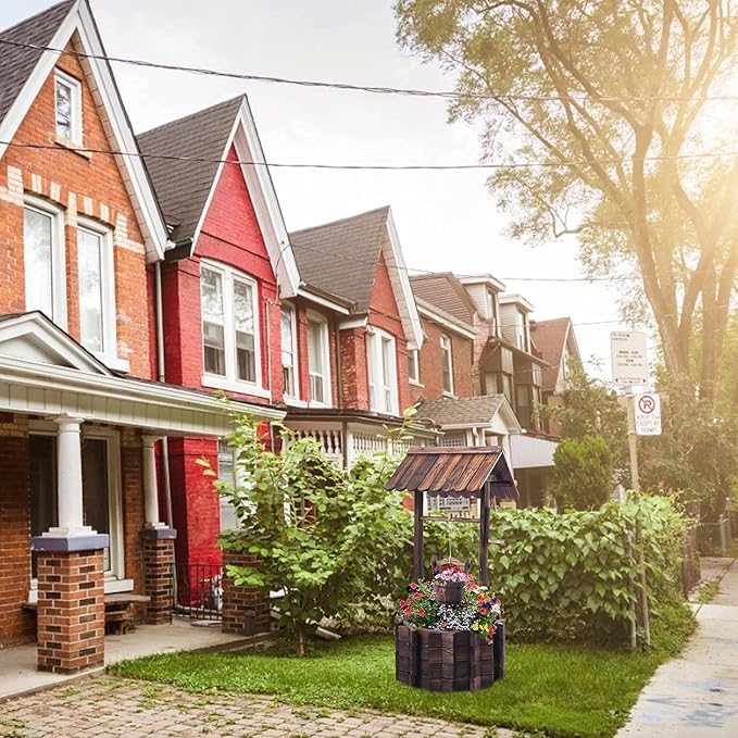- Durable fir wood:Our wishing well flowerpots is made of high-quality fir, after being stamped and carbonized .Decorate your yard with an elegant well that leaves guests and passersby wondering if they stumbled into a storybook scene.