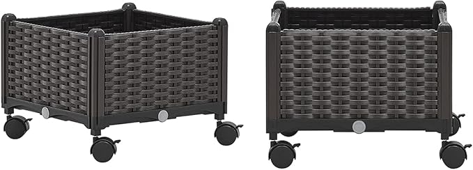 Barton 2 Pieces Rolling Garden Bed Brown Plastic w/Self-Watering Design Outdoor Elevated Planter Box Kit Wheels Mobile