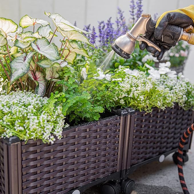 - Self-Watering Design - Barton garden bed is equipped with self-watering disk and drain holes, which provide space for reserving excess water and allowing roots to absorb water and nutrition completely. Each side of the box has a water plug for draining or retaining excess water easily