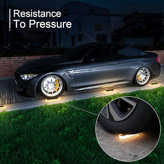 - 🔆Excellent Corrosion Resistance:Our solar step lights outside feature high-hardness plastic housing crafted with advanced packaging technology, ensuring superior corrosion resistance without screws. Rated IP68 waterproof, frost, heat, and pressure-resistant, they support car drives up to 2 tons. Perfect for illuminating steps, decks, docks, gardens, patios, pathways, driveways, yards, pools, boat paths, and more.