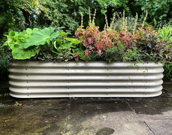 Vego garden Raised Garden Bed Kits, 17" Tall 6 in 1 Modular Metal Raised Planter Bed for Vegetables Flowers Patio Ground Planter Box-Pearl White
