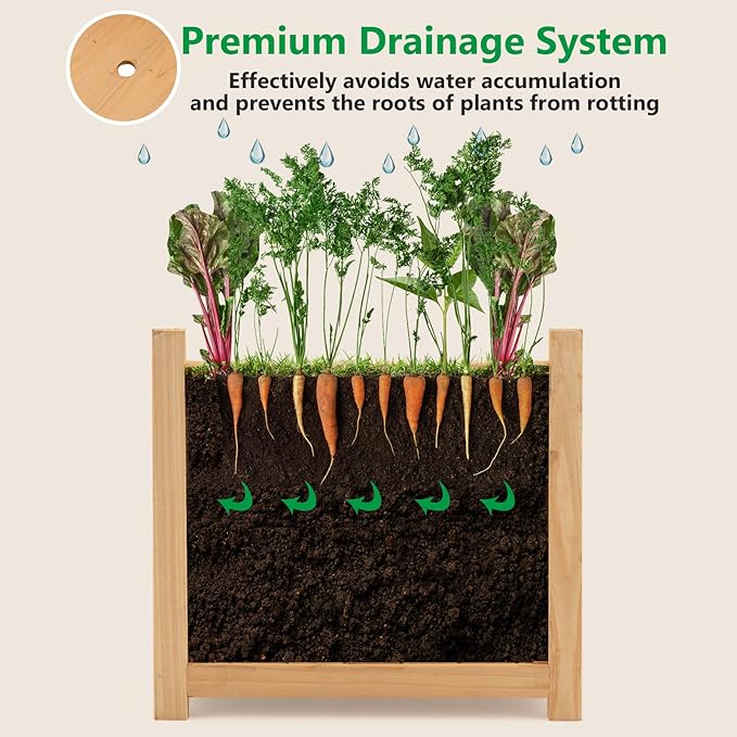 - Detachable Bottom with Drainage Hole: The bottom plank of our raised garden bed is detachable. This design makes it easy to manage and clean the planting box. There is drainage hole in the middle of the bottom plank, which is conducive to draining excess water and promoting the growth of plant roots.