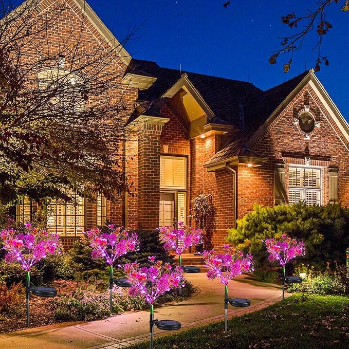 - Purple Glow, Perfectly Eerie—Light Up Halloween Night! Get ready to transform your outdoor space into a Halloween haven. These enchanting purple flowers are the perfect addition to your spooky decor, casting an eerie glow that brings your Halloween display to life. Line your garden pathways, illuminate your front yard, or add a ghostly touch to your porch and entryway. Nestle them among bushes, surround tree bases, or weave them into your graveyard displays for a hauntingly beautiful atmosphere. Whether it's your patio, deck, or poolside, these lifelike solar lights will set the perfect eerie mood, making your Halloween unforgettable