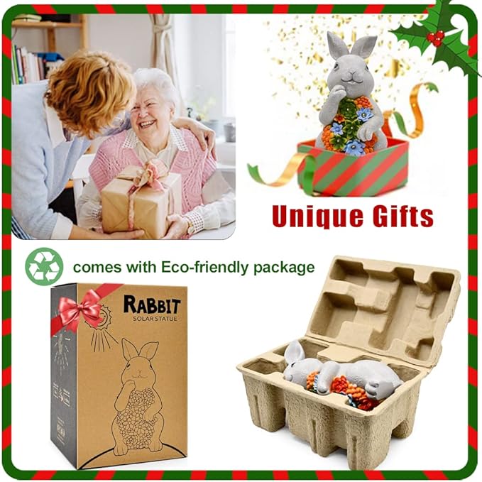 Nacome Solar Garden Outdoor Statues Bunny with Succulent and 7 LED Lights – Lawn Decor for Patio, Balcony, Yard Ornament - Unique Housewarming Gifts