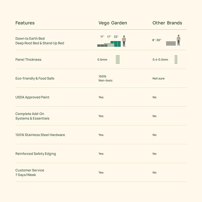 - Complete System: Vego Garden has aimed to create unified gardening systems that start outside, in your garden, and extend all the way into your day-to-day today life. The team continues to develop more products that enhance the Vego experience, such as cover system, worm composters, arched trellis and wall trellis and so on. Beyond the physical product, education and community are an integral part of the Vego Garden system, we will continue to strive for these values from design to customer